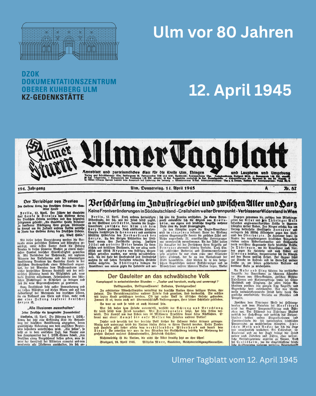 Ulm vor 80 Jahren: Durchhalteappel von Wilhelm Murr, Gauleiter Württembergs, vom 12. April 1945